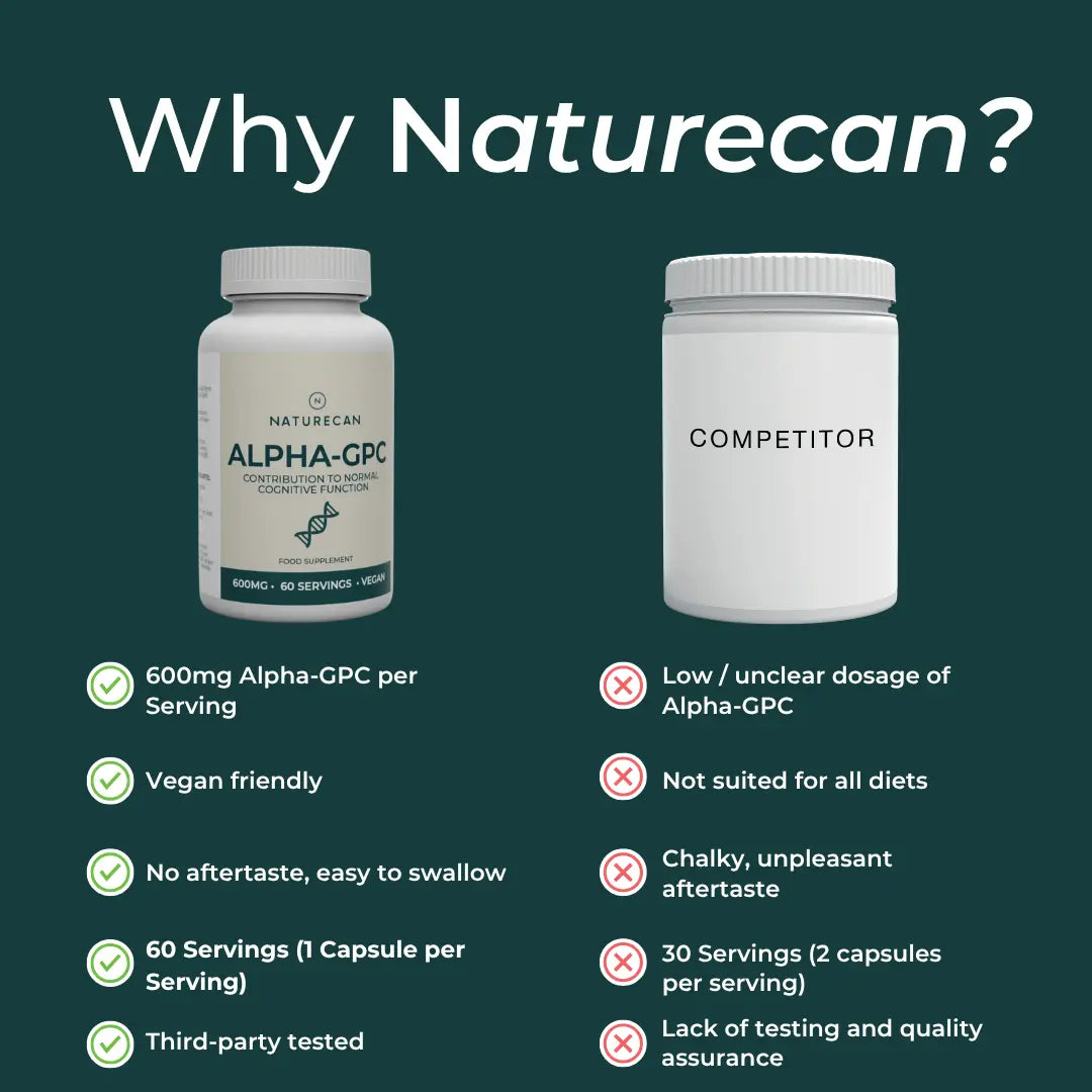 Unlock the true potential of enhanced clarity and focus with Naturecan Alpha GPC. A premium, vegan-friendly supplement crafted to support your brain’s natural function and overall wellbeing.
