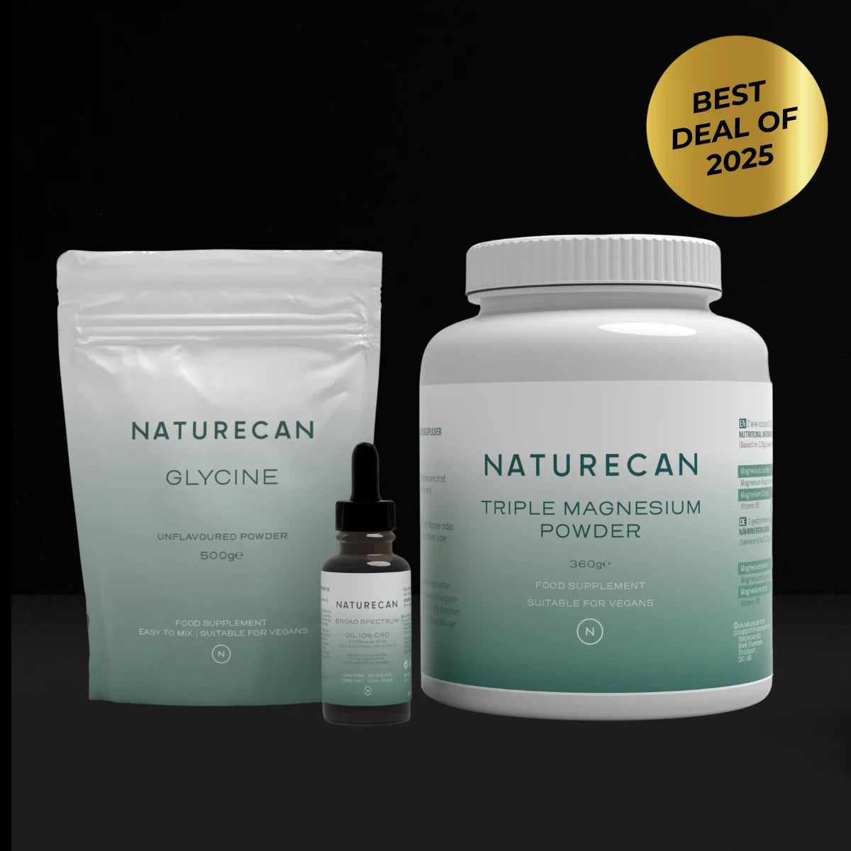 Achieve a deeper, more restful sleep with Naturecan’s expertly formulated Sleep Bundle. A natural trio of powerful supplements crafted to support your evening wind-down and promote healthier sleeping patterns. From restless nights to broken sleep, poor sleep can impact much more than your energy levels alone. Our bundle may help you rest, recover and restore, night after night.