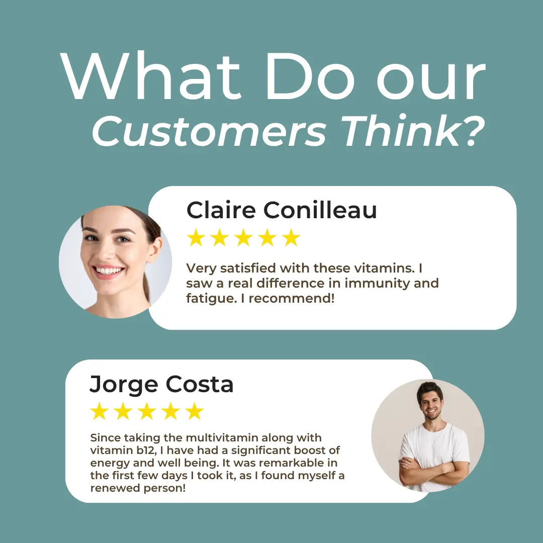 Our multivitamins ensure the 100% daily intake of 18 of the vitamins and minerals contained in each capsule.